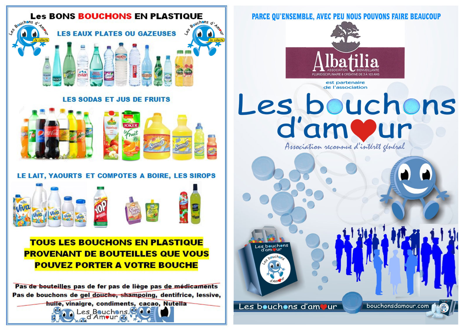 Nous venons de faire un partenariat avec l'association nationale "Bouchons d'amour". Cette association a pour but de collecter tous les bouchons et couvercles en plastique. L'argent gagné sert à aider au financement de matériels ou d'équipements pour des personnes handicapées. Garder ses bouchons = un geste de solidarité + un geste pour l'environnement ! Nous allons très prochainement mettre à disposition des points de collecte dans le village. Vous pouvez dès à présent mettre de côté vos bouchons.