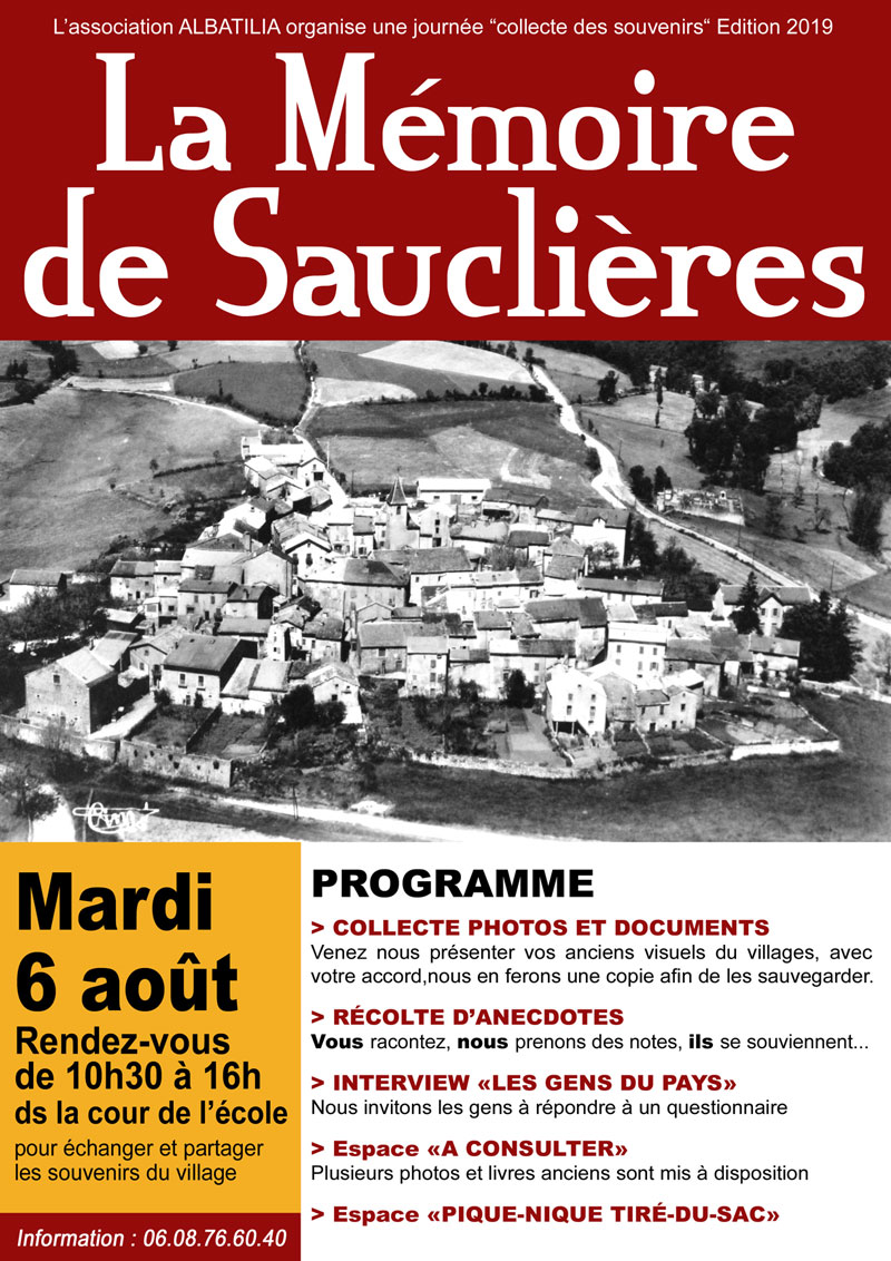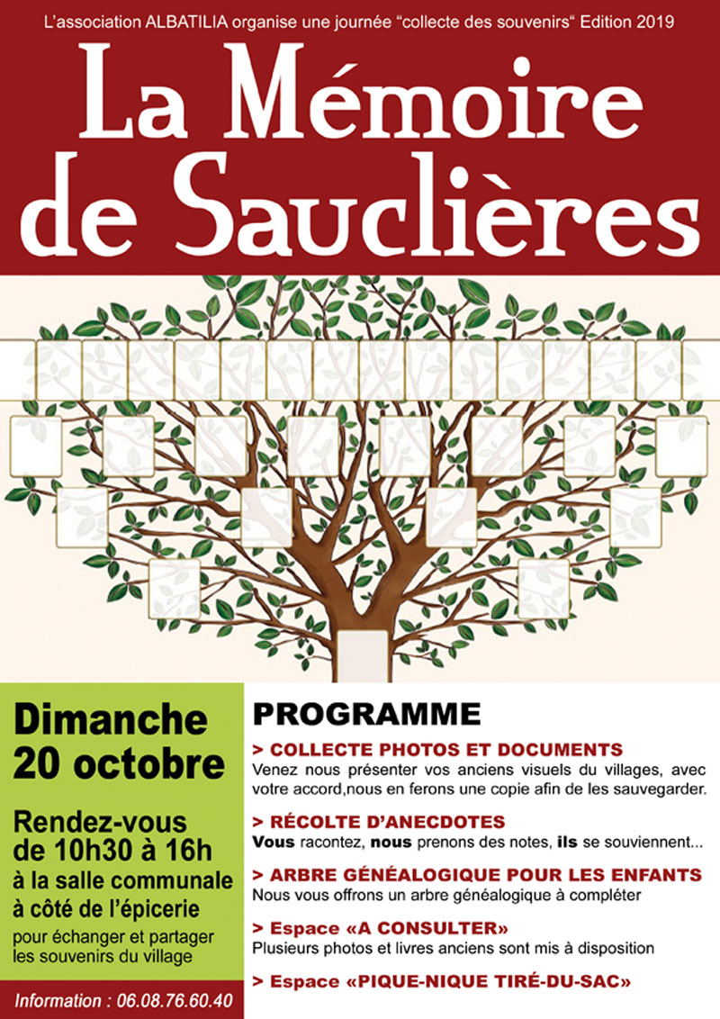 Cet événement est organisé plusieurs fois par an, soit dans la cours de l'école, soit dans la salle communale. Tout le monde est invité à partager souvenirs et témoignages du village. AU PROGRAMME :