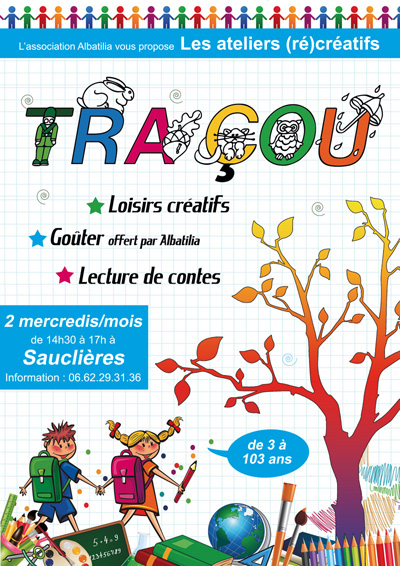 Cet atelier propose des activités 2 mercredis par mois de 14h30 à 17h dans la salle communale à côté de l'épicerie. Il aborte des thèmes différents en fonction de l'année : Noël, Carnaval, saisons, journées mondiales... Il est actuellement divisé en quatre parties :